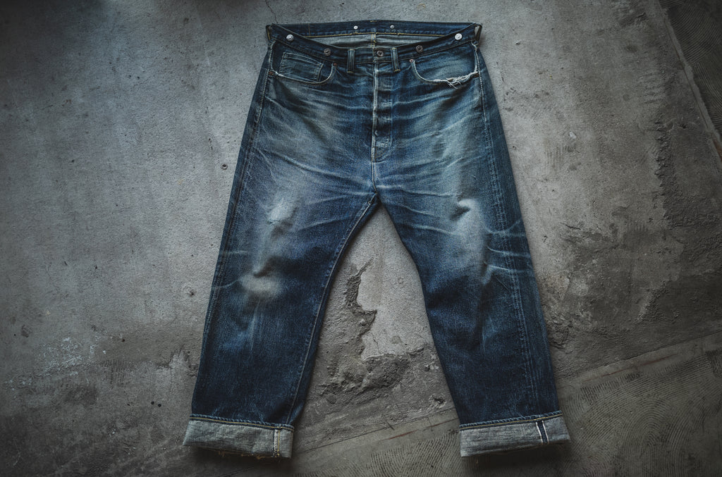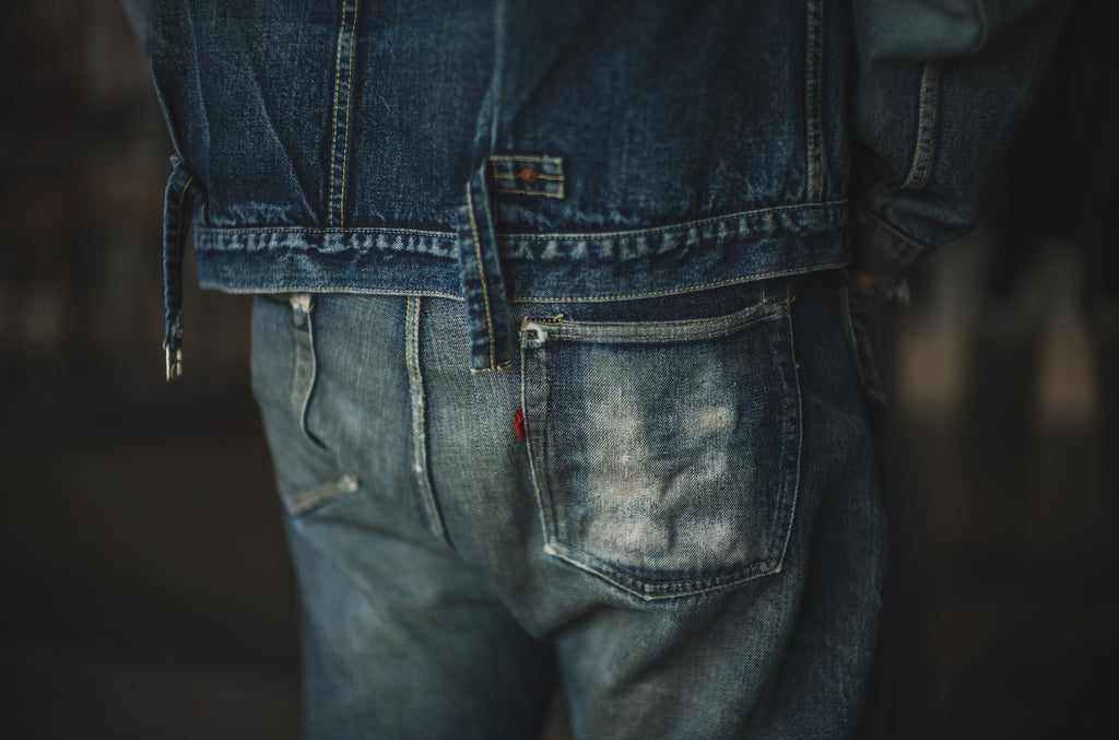 The denim is stiff, replicating the wartime fabric that was made from cotton with extremely short fibre length which was twisted tightly to make thread. The result is a very rigid (at first) but durable pair of jeans.