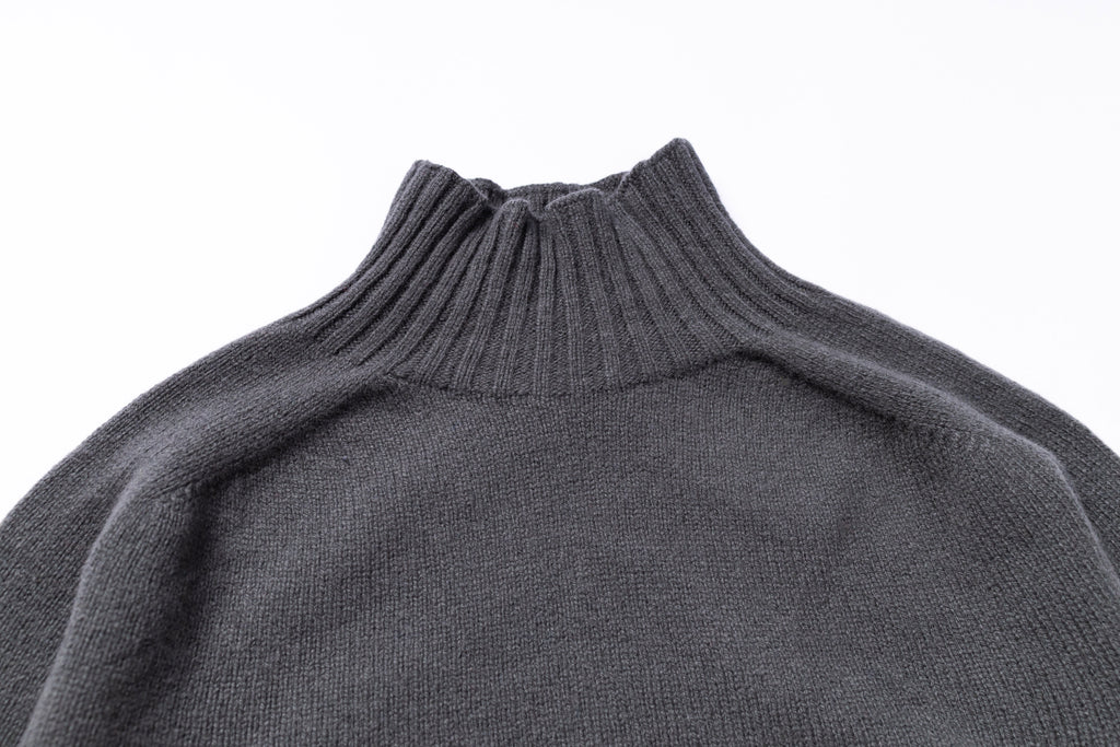 HARLEY OF SCOTLAND - Ladies Superfine Lambswool Mock Neck in Drill Grey