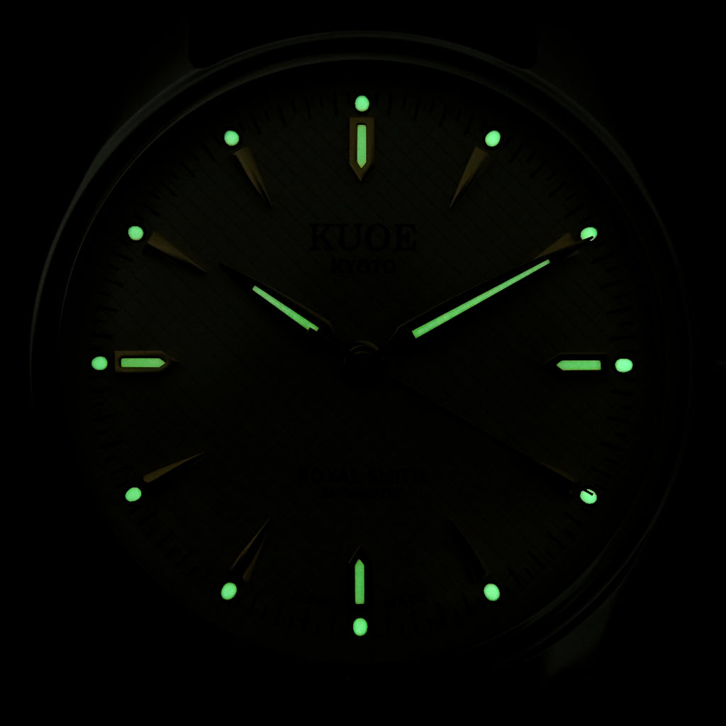 Swiss-made Super-LumiNova® Hands and Dial - Glows in the dark after being exposed to strong light.