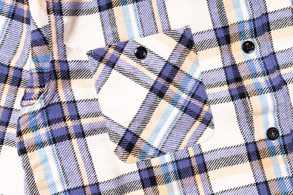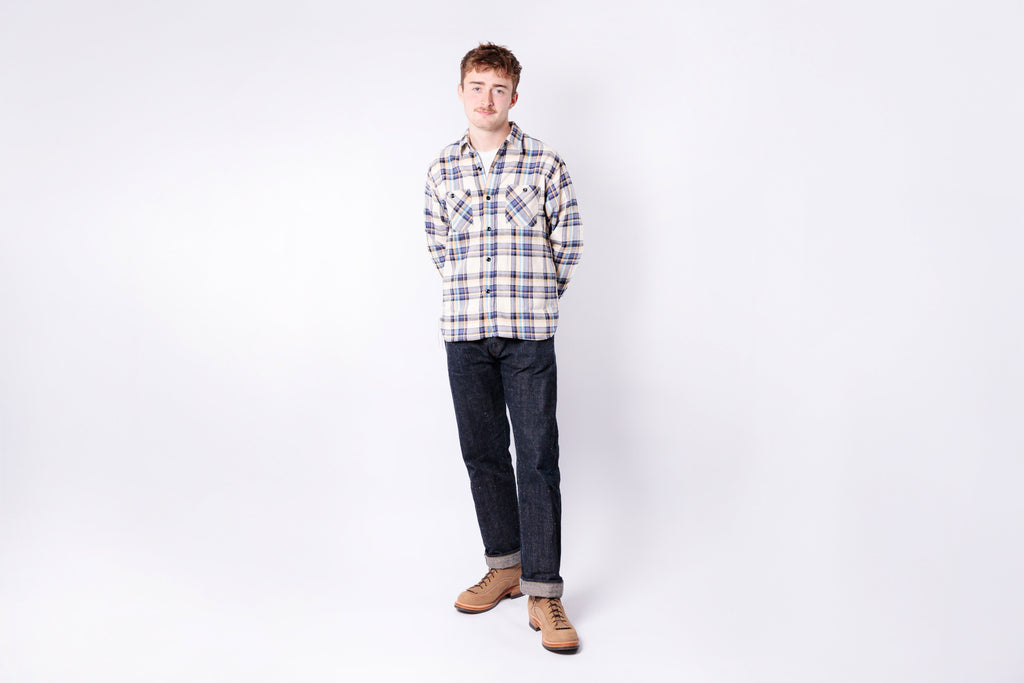SUGAR CANE - Twill Check Work Shirt Big Yank Blue